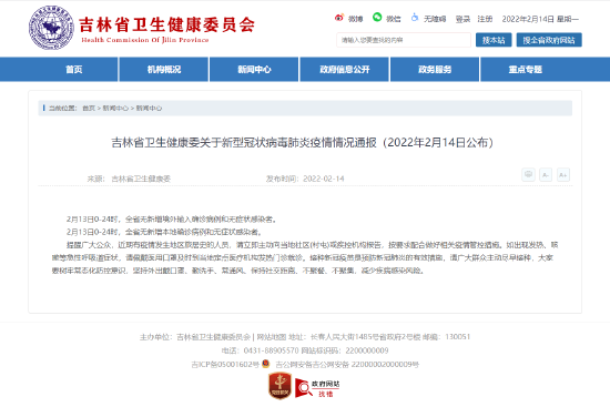 2月13日吉林省无新增本地确诊病例和无症状感染者