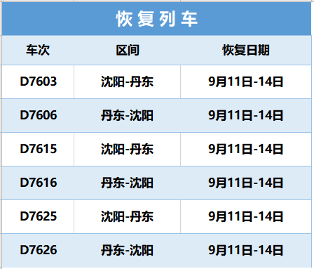 为方便广大旅客出行,沈阳局集团公司,优化调整运输方案,从9月10日起,丹东、朝阳、长春、哈尔滨等方向,陆续恢复、增开、重联开行41趟旅客列车,快来看看都有哪些车次。