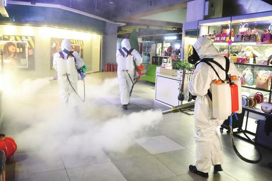 通化城管部门为复工的商家门店消毒。张博 摄 通化建新科技有限公司工人们正在赶工出口订单设备。朱传刚 摄克时艰:防疫生产“两不误”,企业复工信心稳