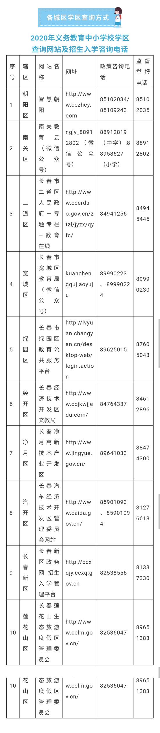 2020年,长春市学区保持相对稳定,学区有调整的,由各区通过区域网站公布。查询学区的方式有两种: