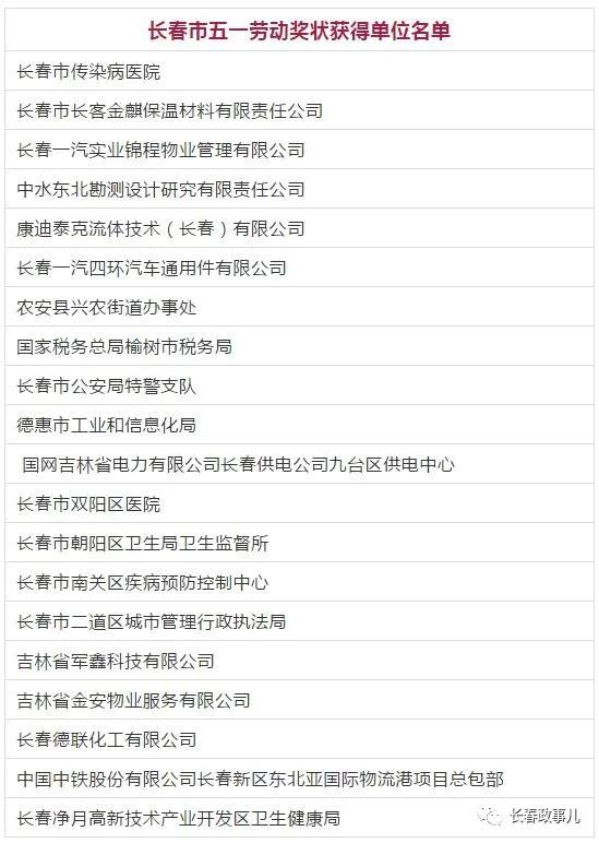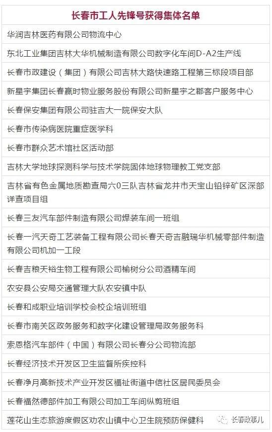 为表彰先进、树立榜样,近日,长春市总工会决定授予长春市传染病医院等20个单位长春市五一劳动奖状;授予一汽解放汽车有限公司聂新宇等100名职工长春市五一劳动奖章;授予华润吉林医药有限公司物流中心等20个集体长春市工人先锋号称号。