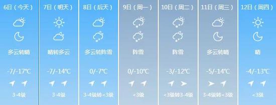 到了周日,气温回升至最高温0℃,好天气坚持到周一。