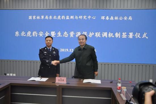 在揭牌仪式上,国家林业和草原局东北虎豹监测与研究中心与珲春森林公安局就联动协作机制事宜签署协议。协议规定了双方的合作原则、范围、机制等事宜,要求研究中心与珲春森林公安局要打破工作壁垒,开展密切合作,形成野生动植物资源保护和打击工作合力,科学有效的开展野生动物资源保护工作,遏制住辖区内破坏野生动植物资源和野生动物栖息地违法犯罪行为,确保野生动植物种群健康发展。