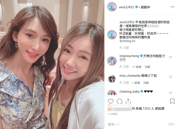 丫头从《我爱黑涩会》出道至今,天生的招牌娃娃音从没变过,平时常通过社交网站,分享生活、工作点滴的她,4月28日开心晒出与林志玲的合照,由于对方同样拥有甜美娃娃音,她忍不住笑说:“娃娃音与娃娃音的对话,是一个高音频的世界。
