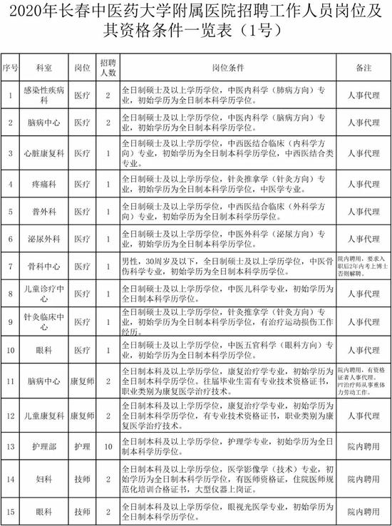 2、资格审核地点:长春中医药大学附属医院急诊右侧“医院招聘资格审核处”。