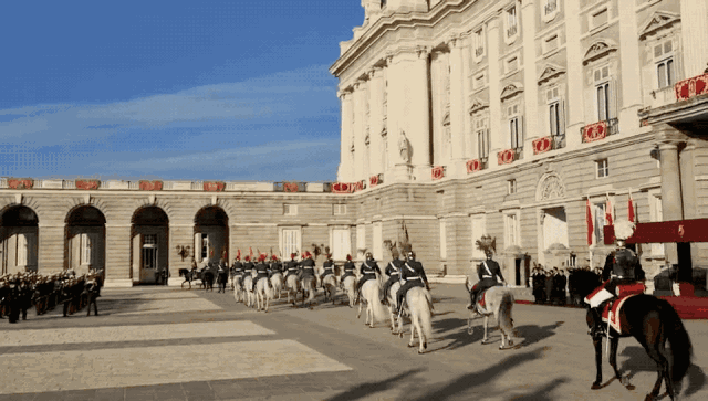 三场宴会之外,令人印象深刻的便是战机护航和在马德里王宫武器广场举行的盛大欢迎仪式。