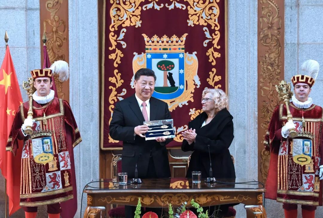 造访马德里市政厅,不仅仅是接受一份礼物。卡梅纳市长讲起马德里和中国的密切交往,特别是中国春节已成为深受马德里市民喜爱的重要节庆。习主席提到1985年马德里同北京结为友城的往事,并表示希望这把钥匙能进一步打开中西交往、人民友好的大门。