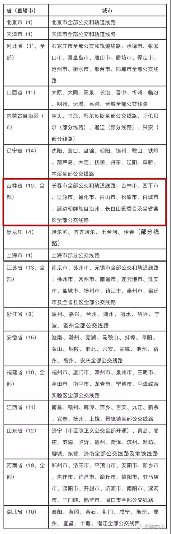 据了解,目前已有这些地级以上城市实现交通一卡通互联互通。其中包括我省长春市、吉林市等10地。