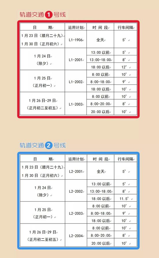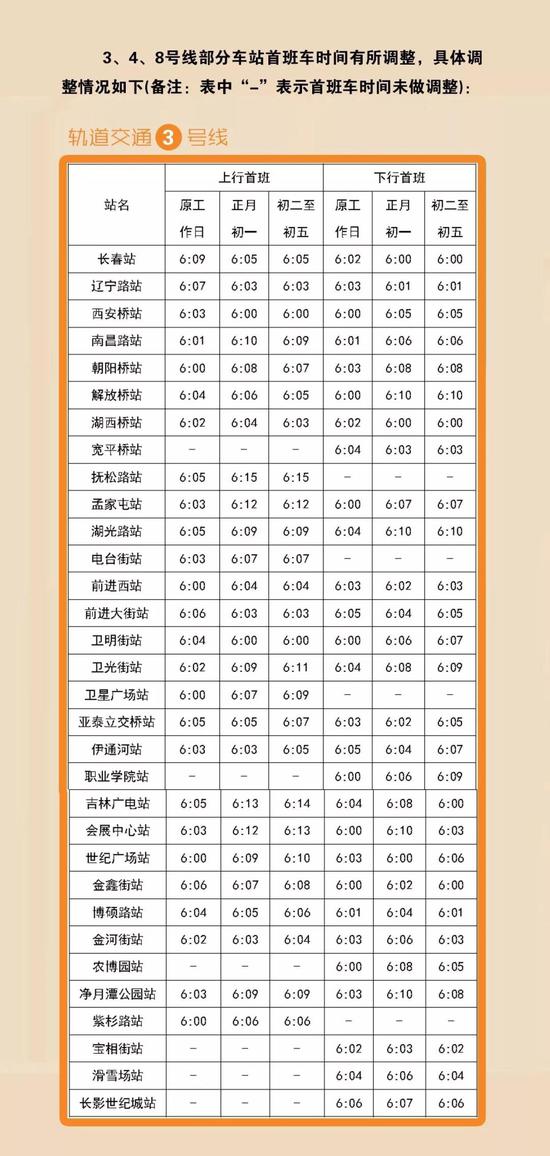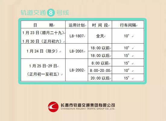 长春轨道交通集团发布春节期间行车间隔
