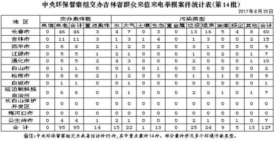 中央环保督察组向吉林省移交第十四批信访件95件