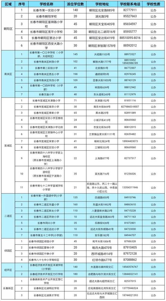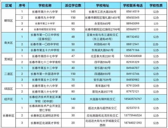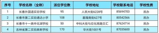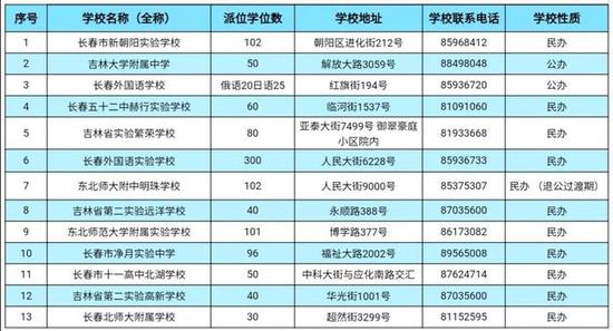 1。民办学校及东北师大附中明珠学校、吉林大学附属中学、长春外国语学校(初中,分为日语、俄语两个语种)面向全市派位。其他公办学校面向本区域派位。