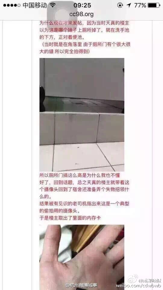 该帖子名为“女生们上厕所小心了!在图书馆女厕所发现了微型摄像头!!!”