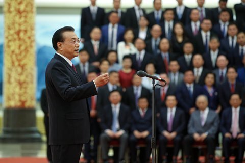 6月12日上午,李克强在人民大会堂金色大厅会见出席第二届世界华侨华人工商大会全体代表并发表讲话。