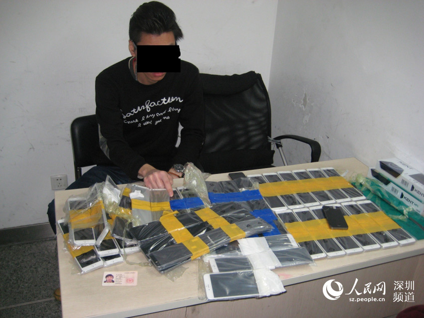 经查验,该香港男子共以人身绑藏方式走私苹果手机94部,均为热销的iPhone6及iPhone5S手机,初步估计总价值超过30万元人民币。