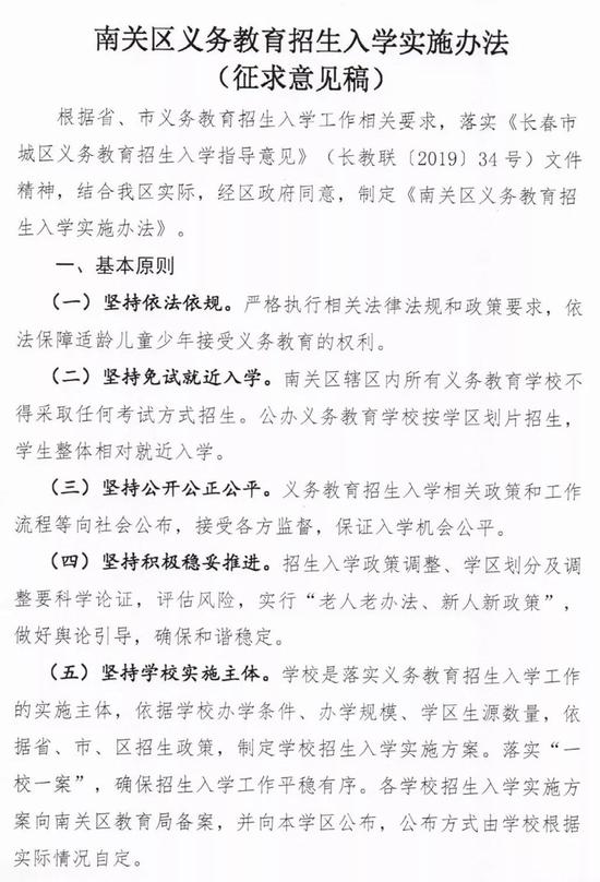 坚持免试就近入学!长春市南关区发布招生征求意见
