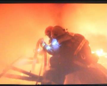 农安消防中队的消防员到场以后,建筑已经烧落架了,起火的库房两侧就是居民区,之间仅有一条不足两米宽的胡同,消防官兵到达现场后,为了防止火势借助风势蔓延到周围的民居,造成更大的损失,两侧同时展开扑救,另一路消防官兵,破拆掉库房后侧的彩钢板,准备随时进入库房内部。