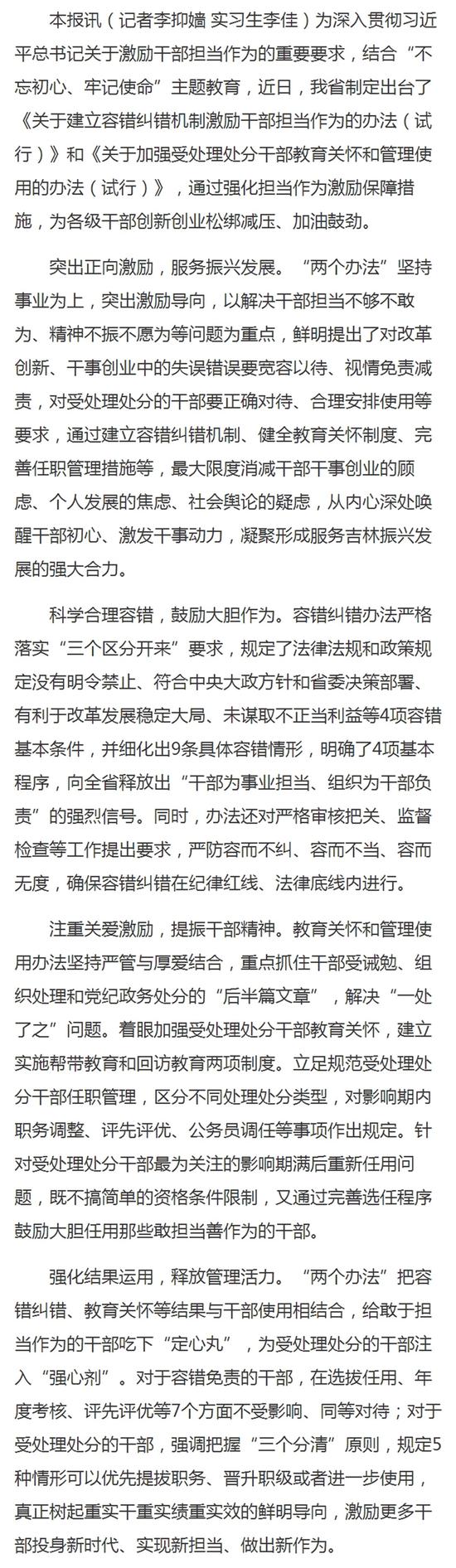 吉林省制定出台“两个办法”为干部担当作为撑腰鼓劲