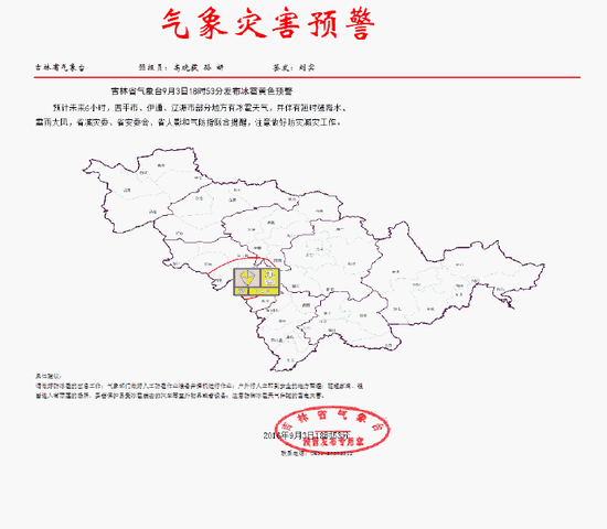 吉林省气象台9月3日18时53分发布冰雹黄色预警