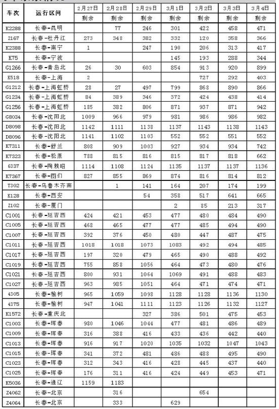 未来七天长春到北京票量充足 旅客请根据出行购票