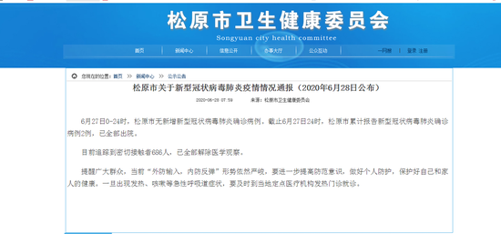 6月27日松原市无新增新冠肺炎确诊病例