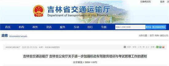 吉林省发布加强机动车驾驶员培训与考试管理工作通知