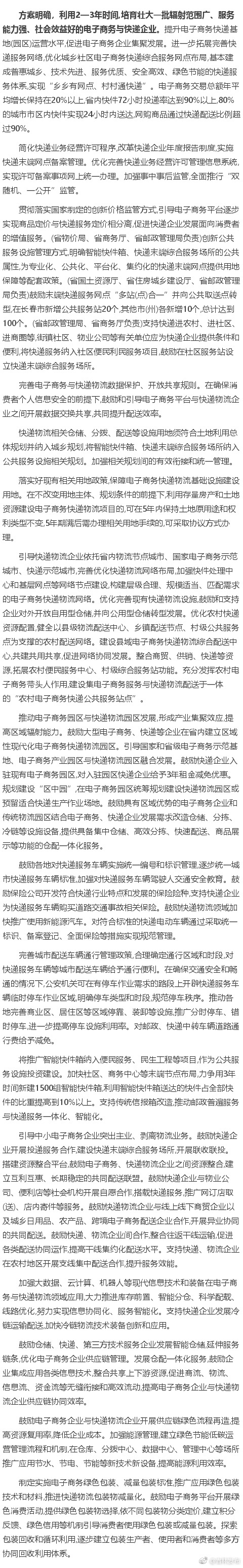 [利用2—3年时间 吉林省80%的城市市区内快件实现24小时内送达]近日,省政府办公厅下发通知,《吉林省推进电子商务与快递物流协同发展实施方案》印发执行。