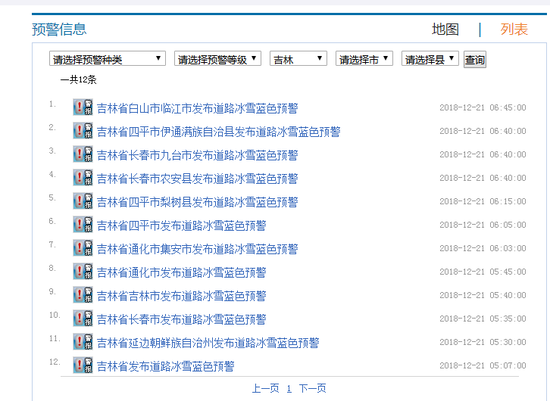 吉林省延边朝鲜族自治州发布道路冰雪蓝色预警