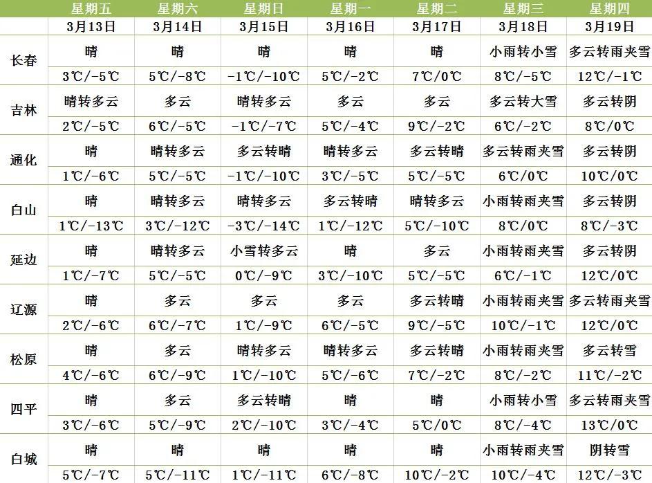 14日夜间到15日白天,吉林省多云,吉林东部、白山、延边、长白山保护区有雨夹雪或小雪。