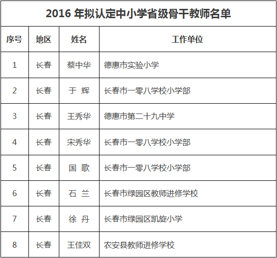 吉林省教育厅对393名中小学骨干教师拟认定公示