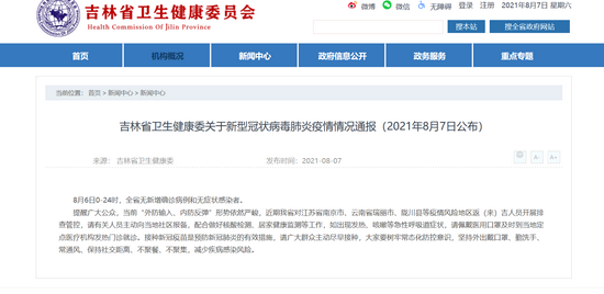 8月6日0时-24时,吉林省无新增确诊病例和无症状感染者。