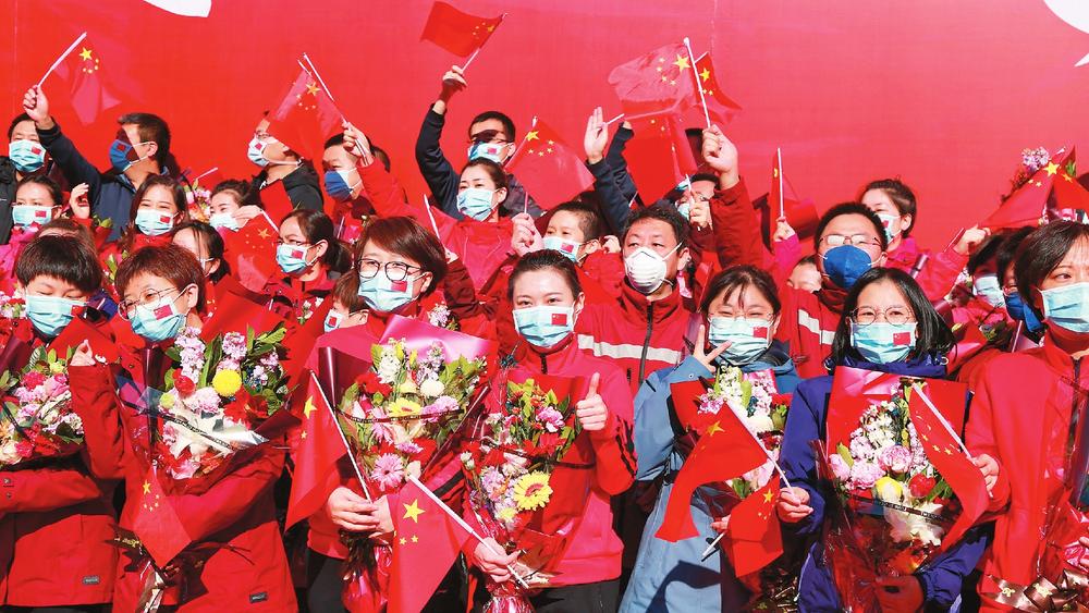 4月7日上午,我省第二批支援湖北返吉医疗队结束集中休整返程欢送仪式在长白山池北区举行。 本报记者付平王佳琪摄 - 新浪吉林