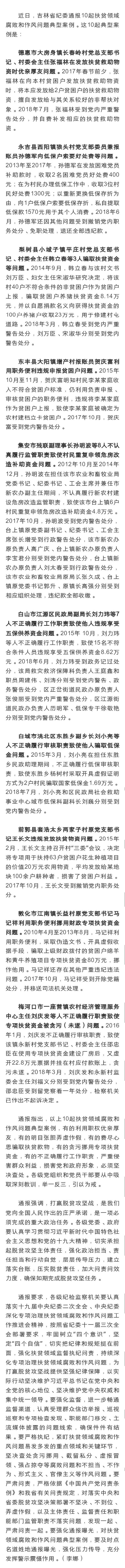 吉林省纪委通报十起扶贫领域腐败和作风问题典型案例