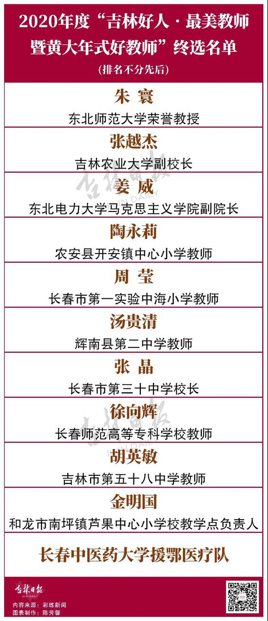 在第36个教师节即将来临之际,9月2日,由吉林省委宣传部、吉林省教育厅主办的2020年度“吉林好人•最美教师暨黄大年式好老师”发布会在长春举行。