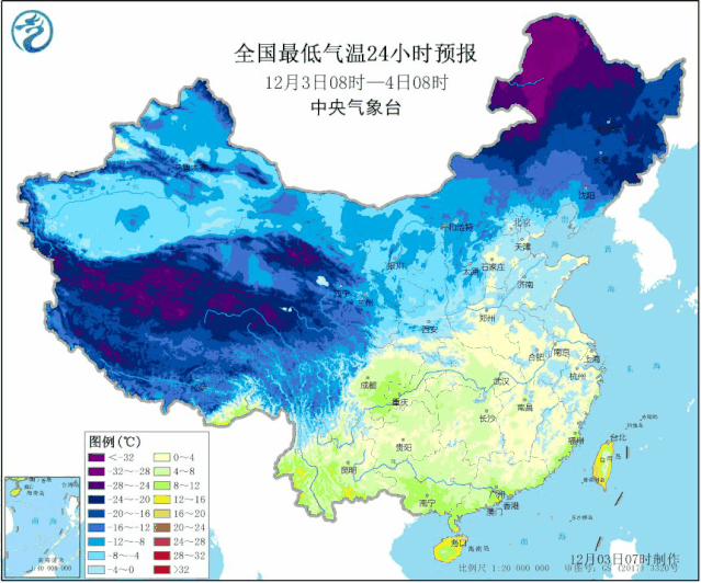 受贝加尔湖强冷空气影响,预计12月3日至12月5日吉林省气温持续偏低,吉林省日平均气温为-15.5℃左右,比常年-9.6℃明显偏低。其中4日—5日,北部和东部山区最低气温可达-24℃~-26℃,部分地方可达-28℃~-30℃,其他地区-20℃~-23℃。