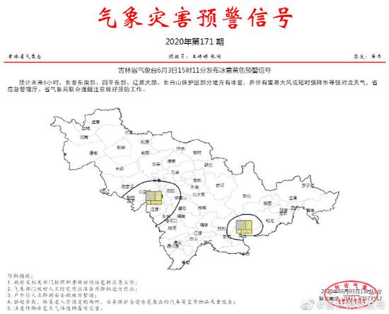 吉林省6月3日15时11分发布冰雹黄色预警信号