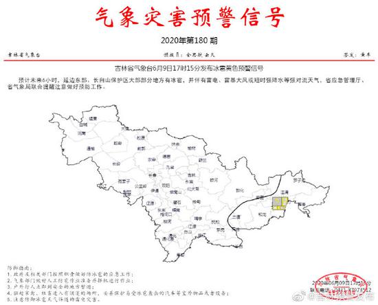 吉林省6月9日17时15分发布冰雹黄色预警信号