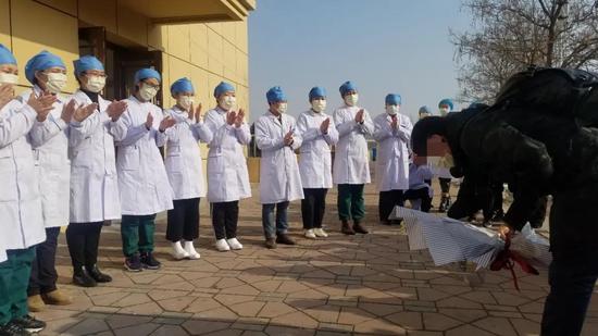 3月10日一早,长春市最后1名新冠肺炎确诊患者走出长春市传染病医院隔离病区,这是长春市45名确诊患者中,最后1名治愈出院的患者。