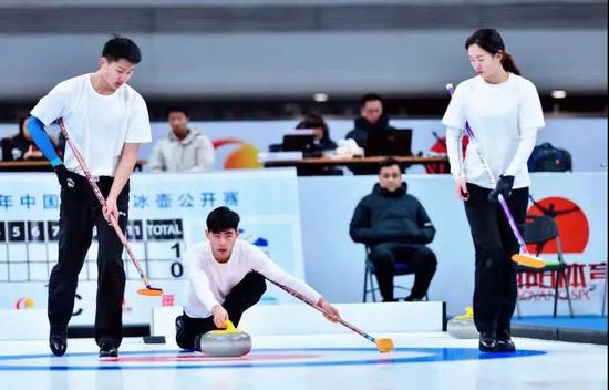 张立坤(中)参加比赛2019年12月1日张立坤正式入选冰壶国家青年队,并将于本月9日以四垒队长的身份出征在瑞士举行的第三届世界青年冬季奥林匹克运动会。