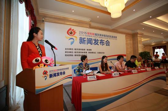 本次发布会首先由哈尔滨市体育总会副主席曲建军介绍“哈尔滨首届半程马拉松”筹备情况以及此次赛事的意义及影响,新浪黑龙江总经理储汐雯介绍了竞赛日期、竞赛规程、参赛规模、报名时间等情况。同时,与会嘉宾共同为本届赛事主形象揭幕。哈尔滨市政府新闻办处长付文茂、保利置业集团黑龙江有限公司副总经理王卫东等领导出席。