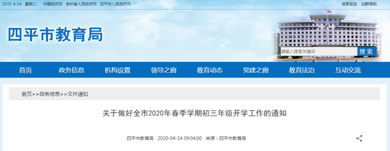定了!四平市初三年级4月20日开学