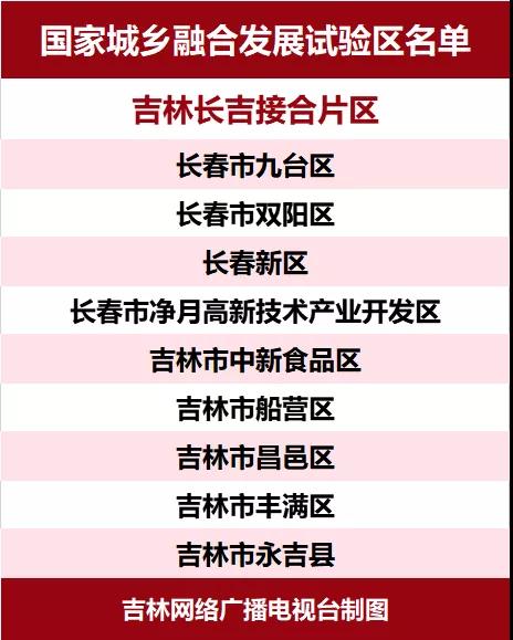 近日,国家发展和改革委员会下发通知,公布全国11个国家城乡融合发展试验区名单。其中,吉林省有1个片区入选,它是吉林长吉接合片区,该片区包括吉林省9地,面积约11081平方公里。