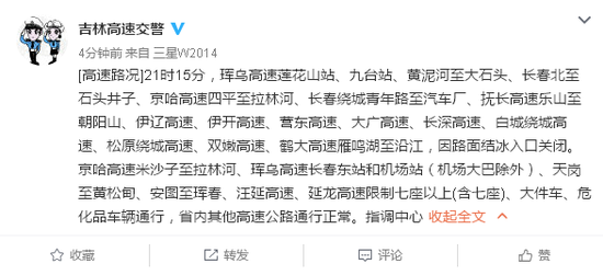 吉林省内多地暴雪雨夹雪、部分高速入口关闭