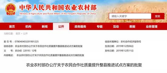 根据《农业农村部办公厅关于开展2019年农民合作社质量提升整县推进试点工作的通知》(农办经〔2019〕10号)(以下简称《通知》)的要求,各省份推荐了农民合作社质量提升整县推进试点单位。