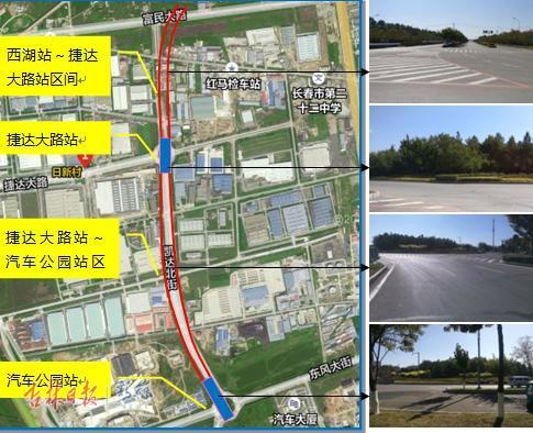 汽车公园站~捷达大路站区间 包括11米暗挖区间和盾构区间,盾构区间下穿自主大路、富奥大路及丙八路、并侧穿一汽物流专用通道桥桩,区间沿线现状以公园绿地、工业、仓储、厂房、汽车配件厂为主。