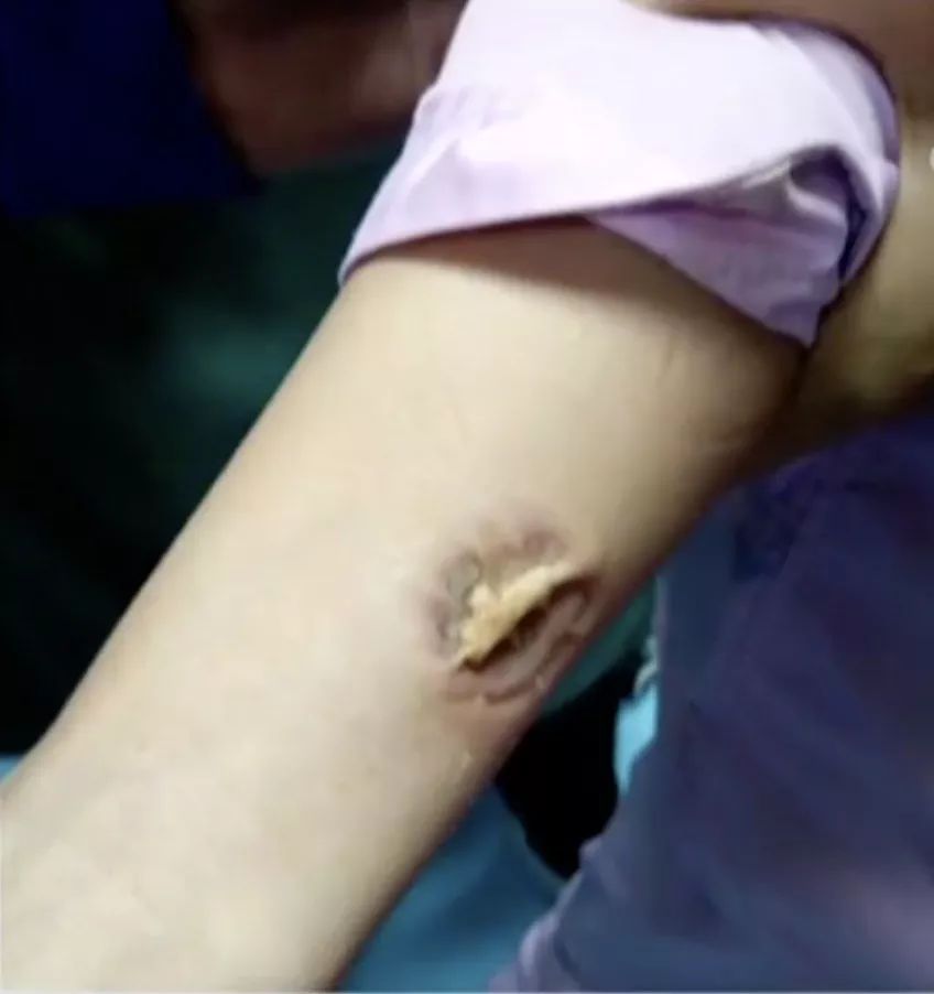 记者来到医院看到刘珊时,事情已经过去了十天,被咬的伤口已慢慢恢复,但是依然清晰可见被咬的痕迹。