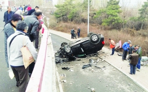 16日零时28分许,一辆黑色福特越野车从南到北去往长春大街方向,将惠工路立交桥辅道的10多米长护栏撞断,直接冲到了桥下,轿车损坏严重,所幸车内人员没受伤。
