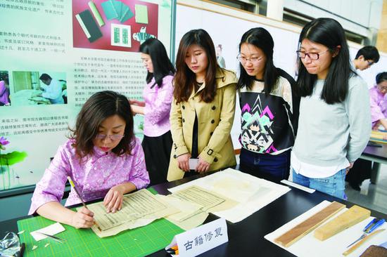 吉大学子修复古籍体验非遗传统技艺