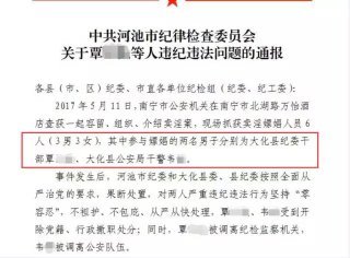 近日,网上流传一份河池纪委的通报引发网友关注,称大化县的一名纪委干部和一名公安干警嫖娼被抓!要紧了,这是真的吗?