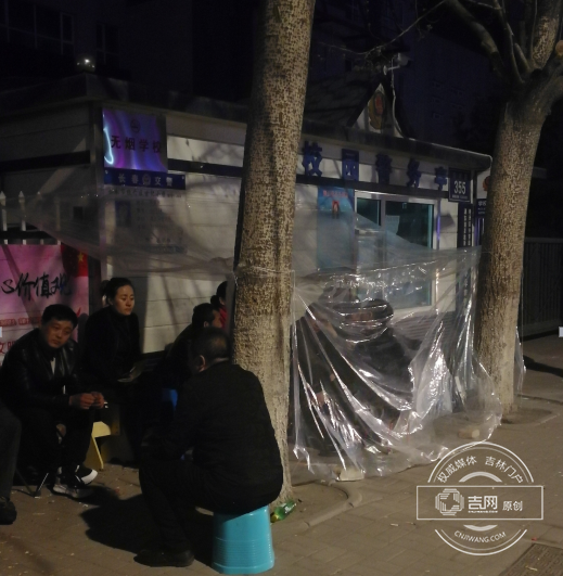 吉网、吉刻APP记者在这排长长的队外走了一圈,发现排队的家长们“全副武装”,有的人穿着厚厚的羽绒服,有的人抱着暖手宝,还有的人怕风大,用塑料布搭起了简易的帐篷……