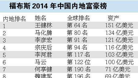 内地大部分超级富豪是企业家、炒房者或职业股民。在这些超级富豪中,有300人拥有至少100亿元的资产,2900人拥有20亿-100亿元,5100人拥有10亿-20亿元,其余的人拥有5亿-10亿元。